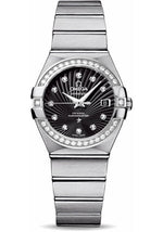 Omega Ladies Constellation Chronometer Watch - 27 mm Brushed Steel Case - Diamond Bezel - Black Supernova Diamond Dial - 123.15.27.20.51.001